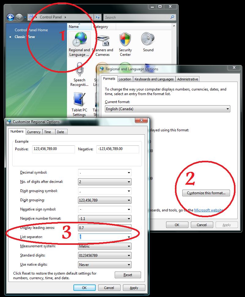 3 - Now you will see a list of settings, find the 'list seperator' and make sure the value is the semi-colon. (;) |
